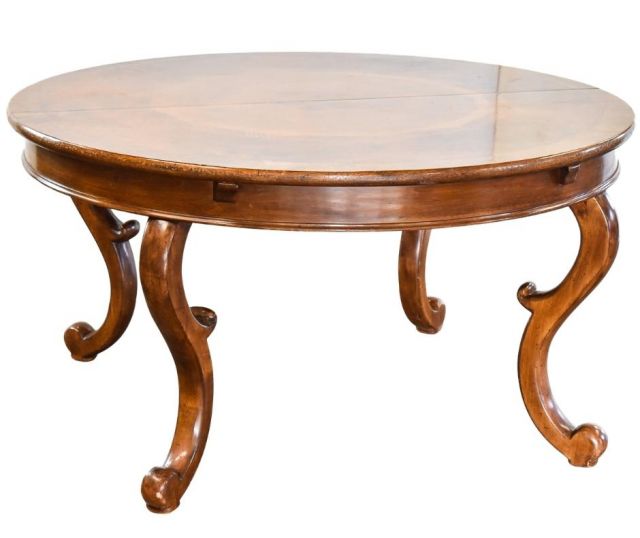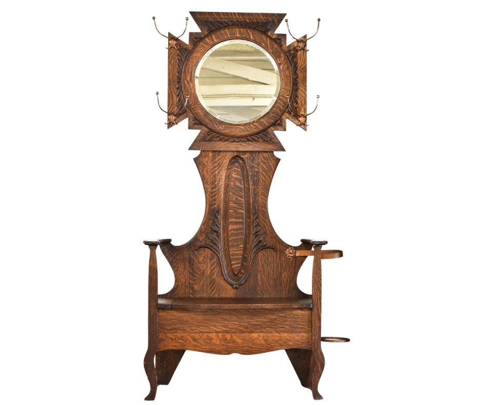 -ANTIQUE FURNITURE including Globe-Wernicke Oak Stacking Bookcase, French Provincial marquetry burl-walnut dining table, Biedermeier style dining chairs, Mongolian painted pine sideboard, antique hall trees, Victorian curio cabinet, walnut burl credenza, Meyer, Gunther & Martini Louis XV style sofa, oak clawfoot Morris chair, parlor tables & more