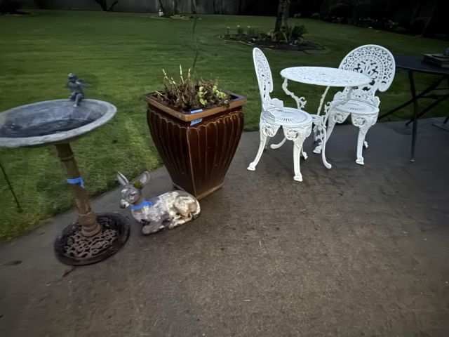 Vintage and modern yard decor