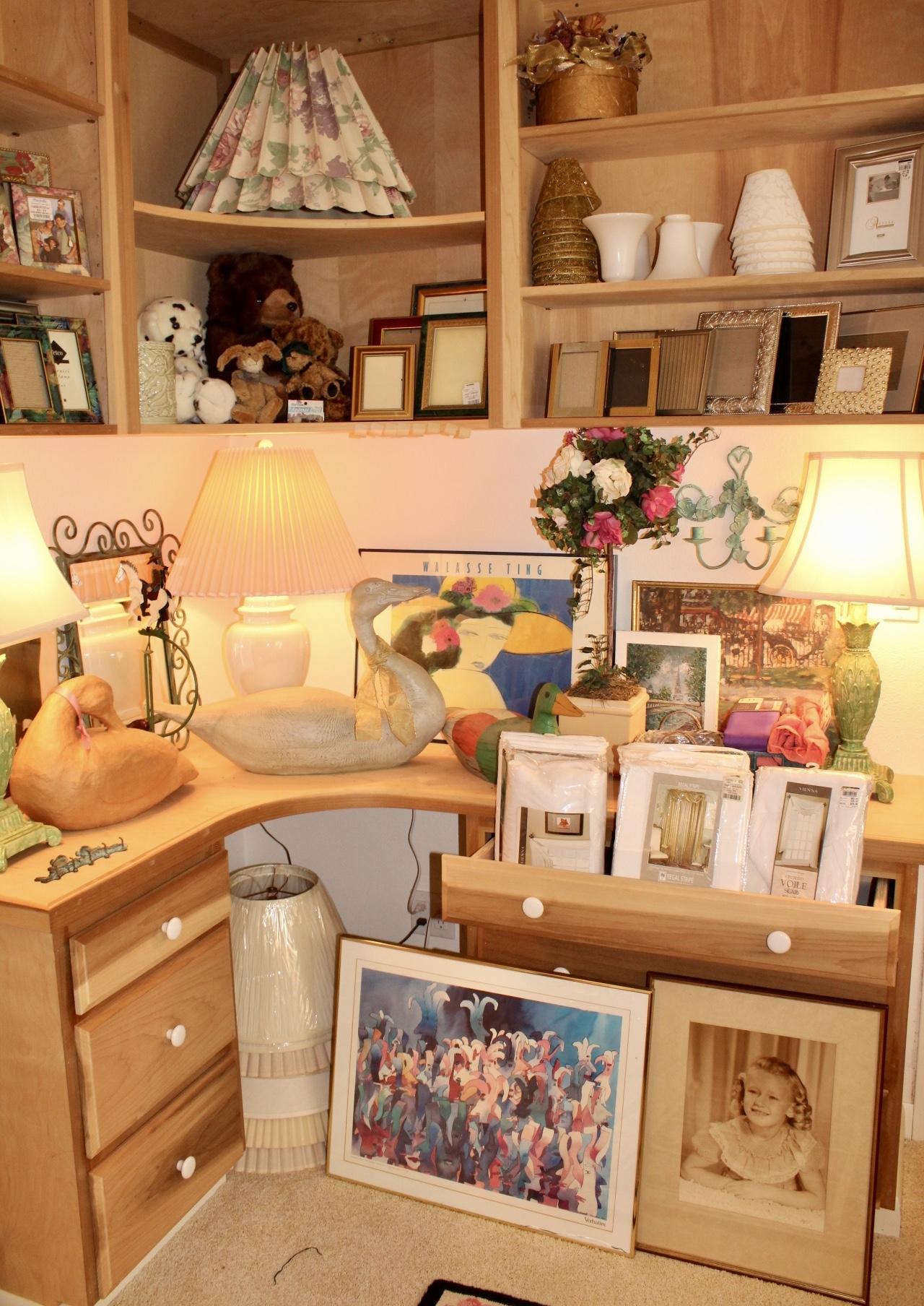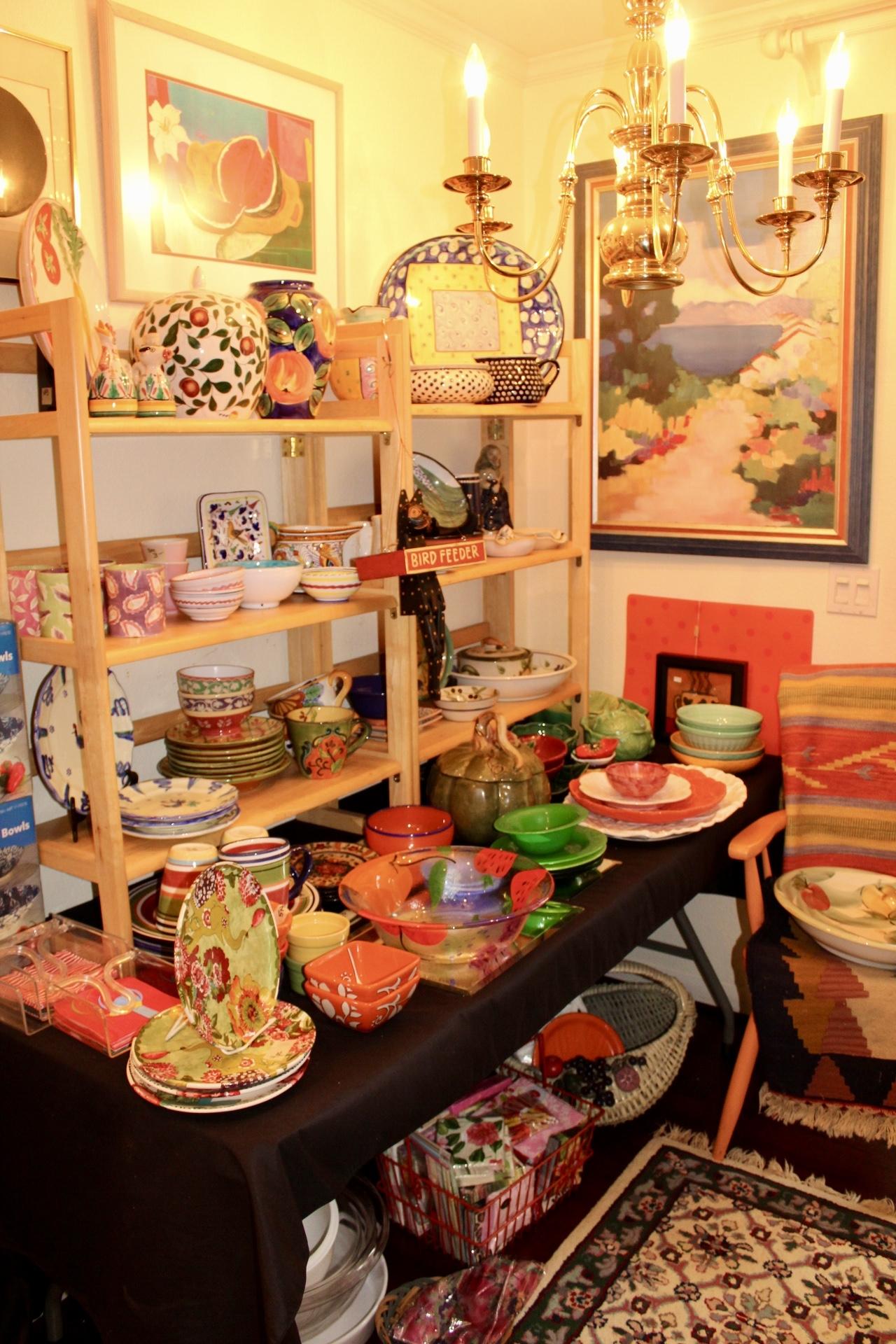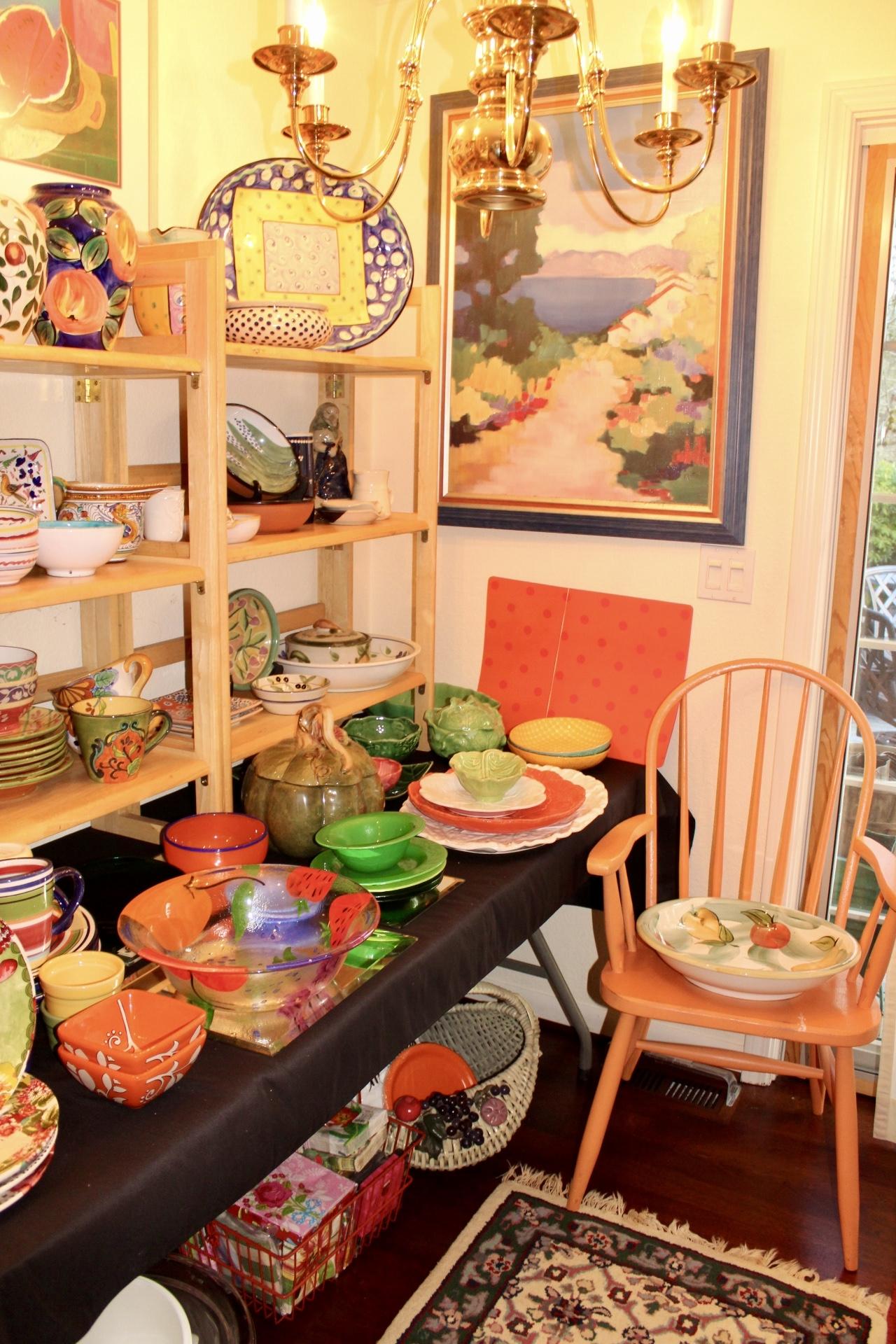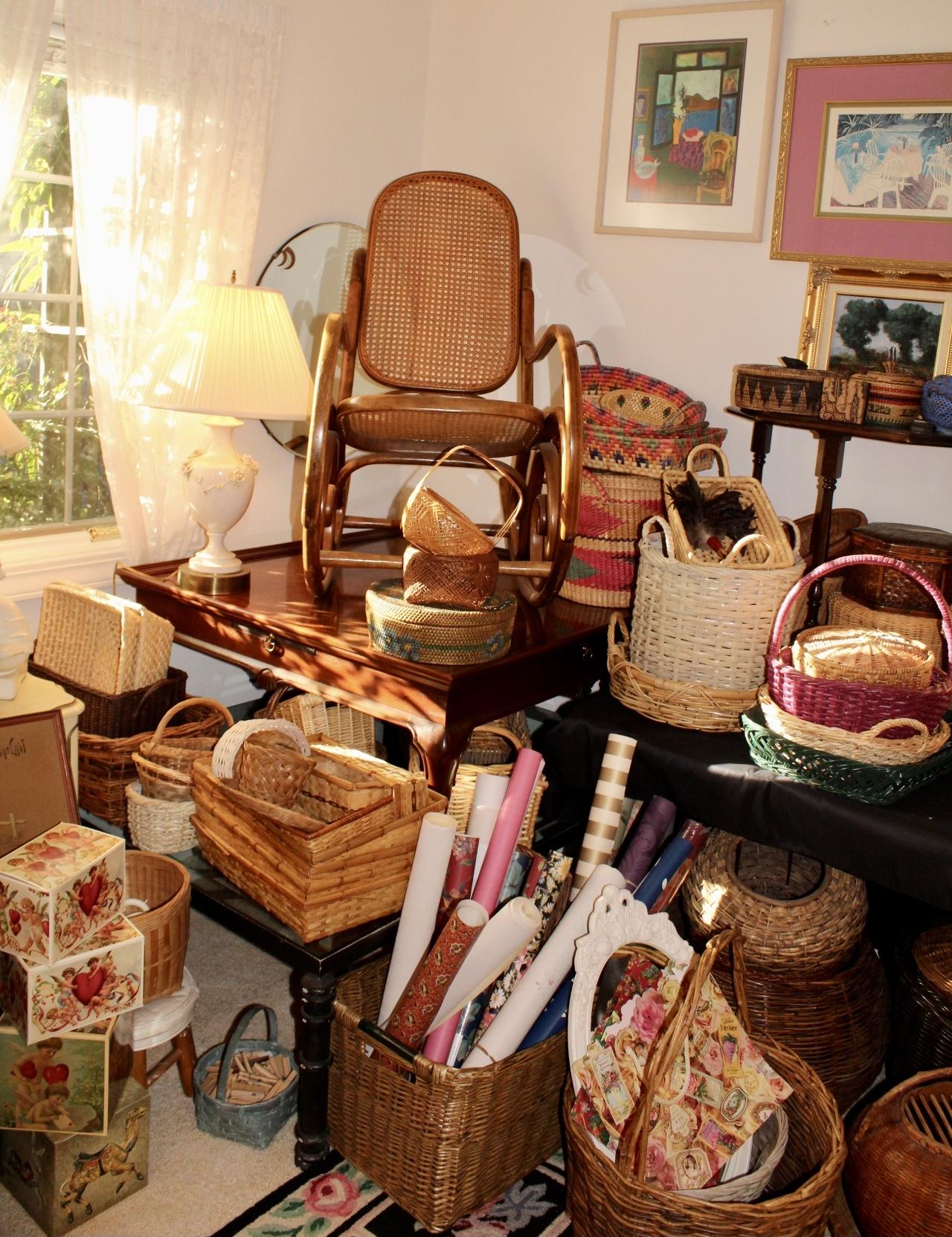 House is PACKED! Antiques to Contemporary. Traditional to Whimsy. Original Artwork; Laverne Krause, Alex Gorman, Shingo Honda, Mary Karasick, Susan Comerford, Mayte Parsons, Fred Vanomer and more... Sterling Flatware, Lenox Stainless Flatware, Italian Ceramics, Milo Baughman for Thayer Coggin Floating Coffee Table, Thonet Rocker, Wedgwood China, Lloyd Loom Wicker, Art Prints & Lithographs (Thomas McKnight), Electronics, LP's, DVD's, CD's, Books, Rugs, Asian, Lamps, Mirrors, Silverplate, Baskets, Barware, Glassware, Linen, Ladies L-2XL Clothing, Full Kitchen, Office, Patio Furniture & Decor, Household Misc.