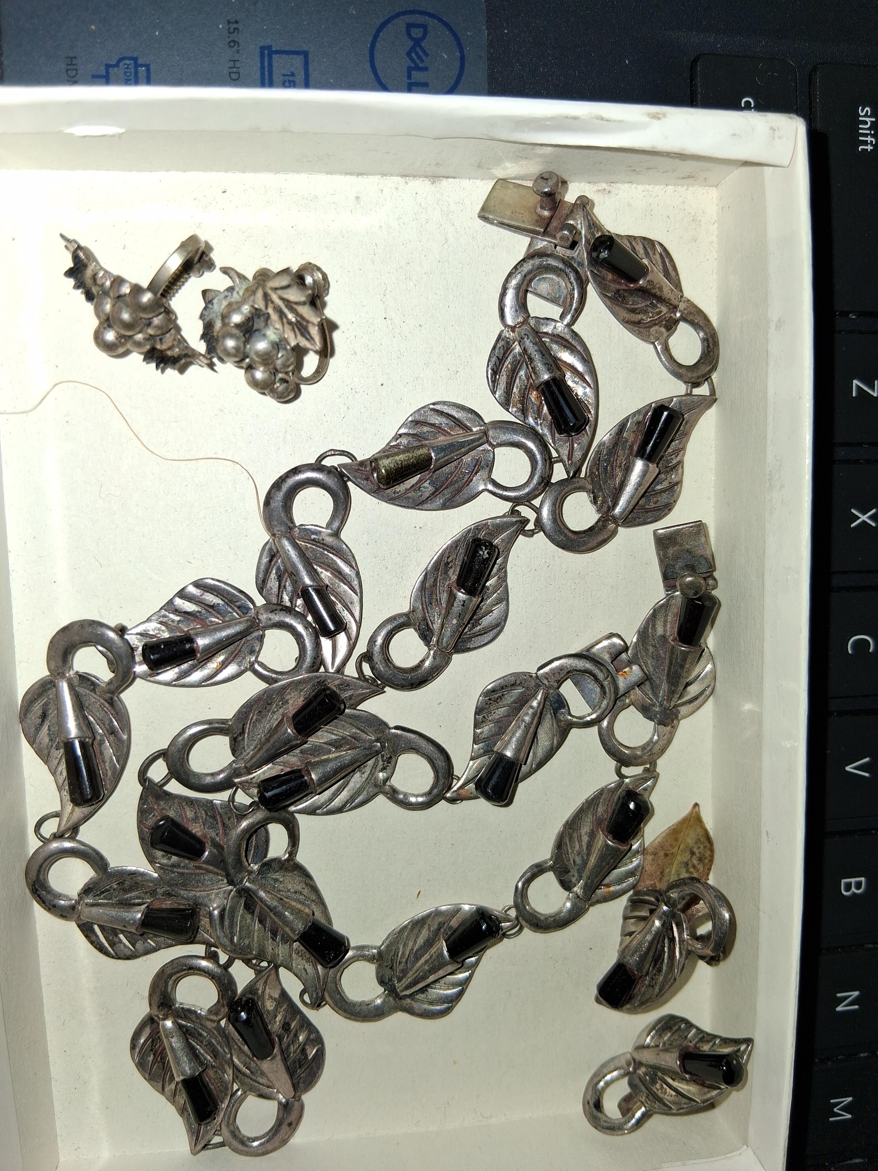 Mexican Sterling and Onyx Necklace, Bracelet, and Earring Set (2 Troy ounces. (Estimated silver