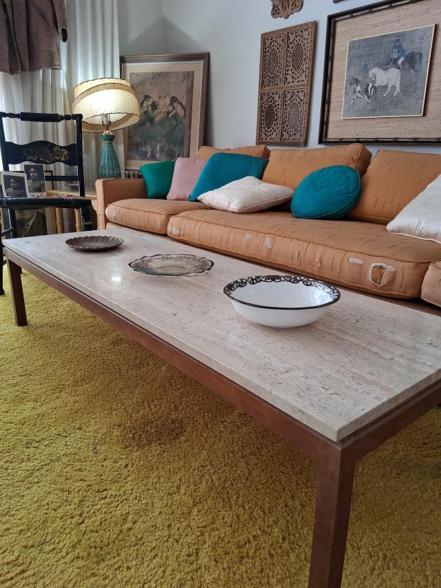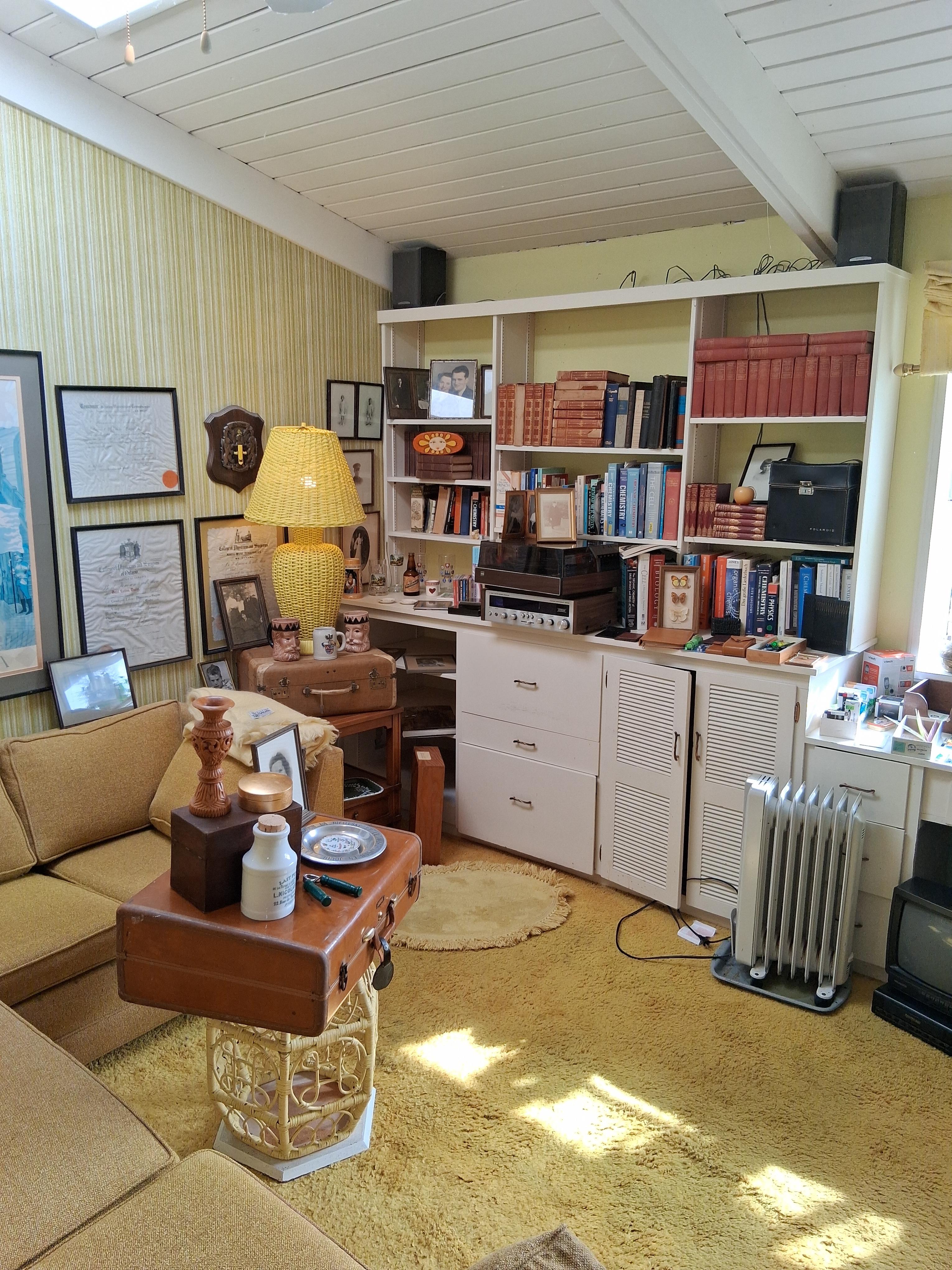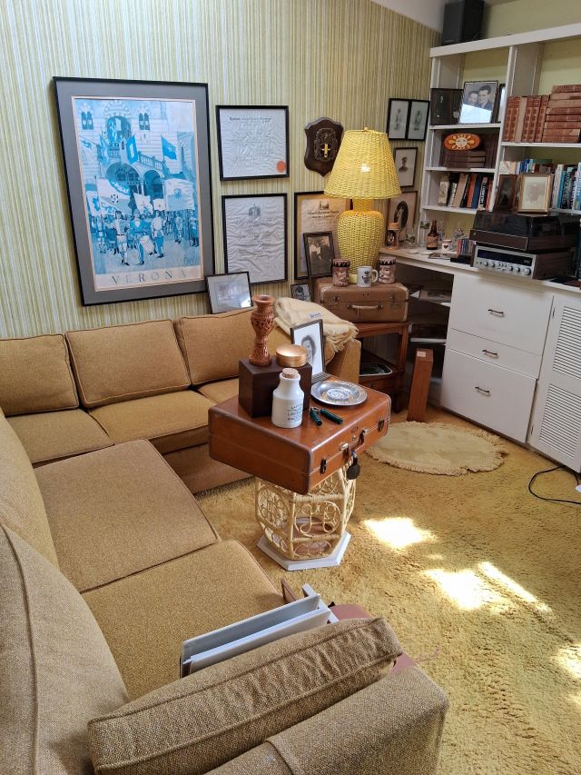 Talk about a walk back in time! Harvest Gold shag carpet, it's a fun sale. This sale is cash only, please watch for