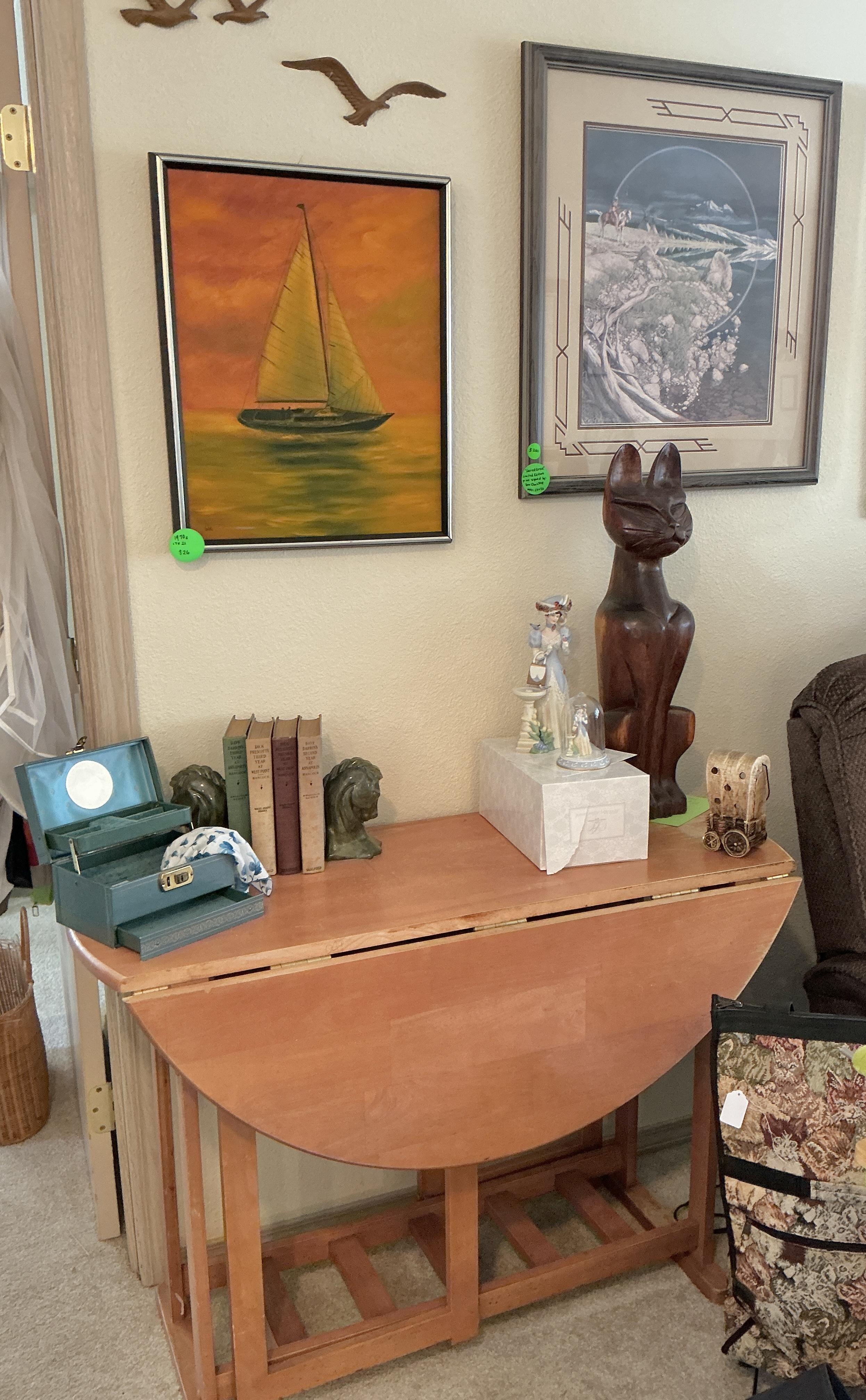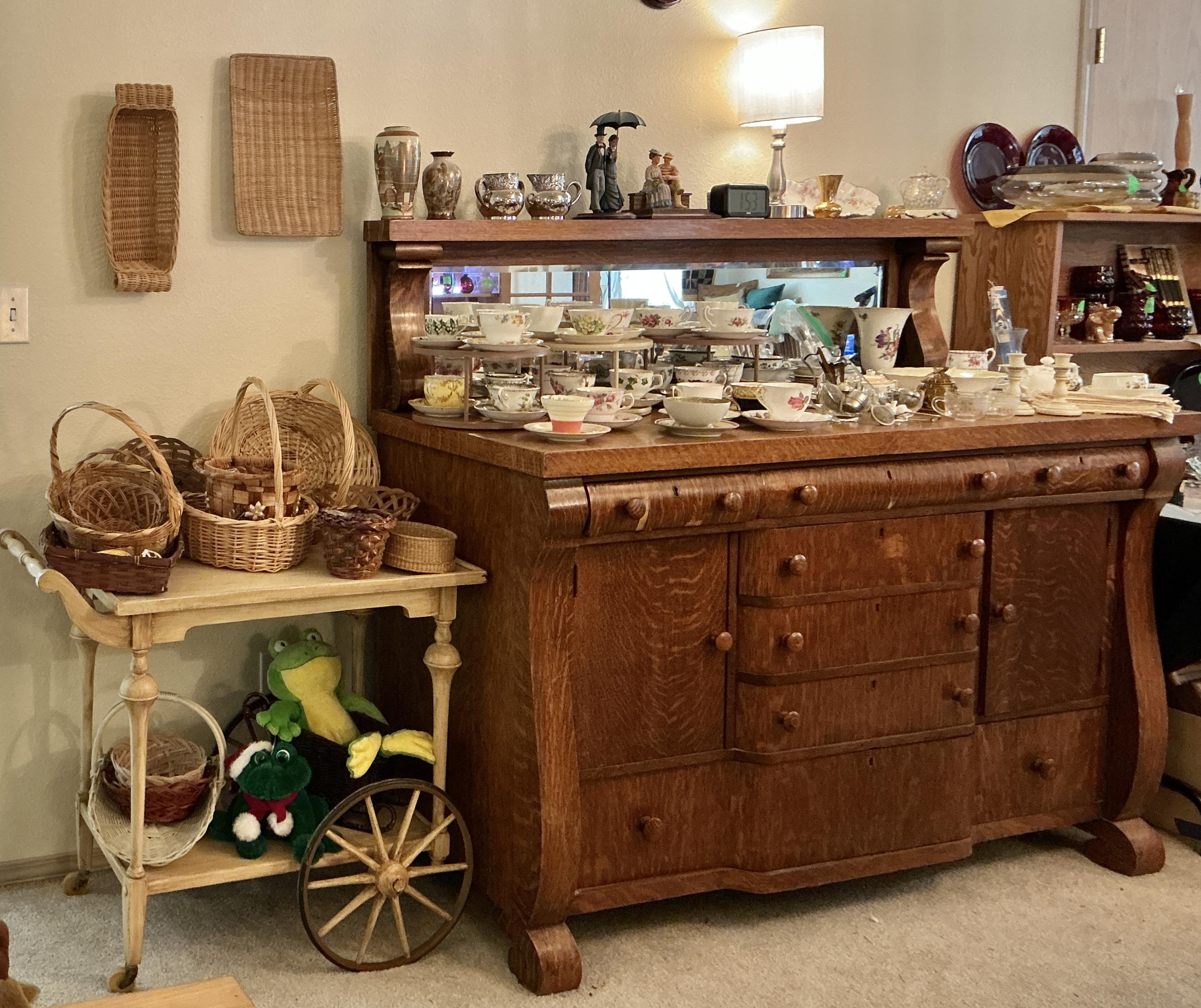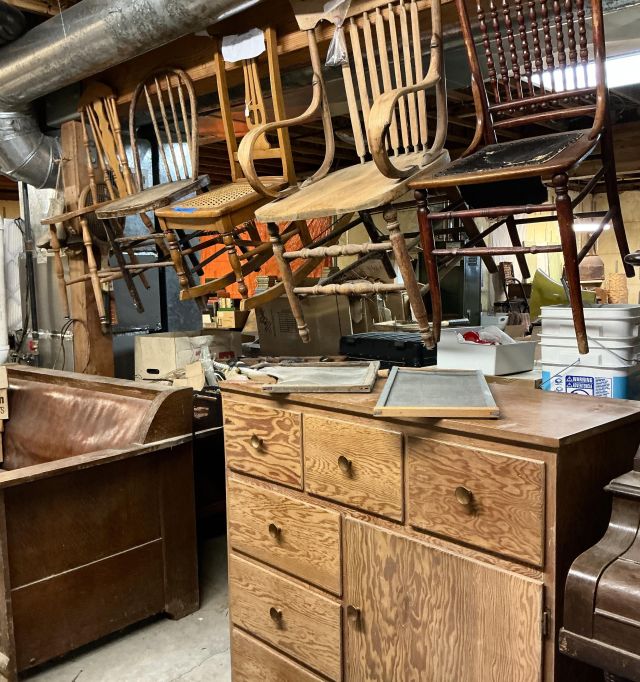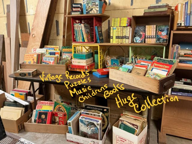 Alder house, Bev Doolittle, Tupperware, Avon, pre- WW2 & Civil War memorabilia, Cast Iron, Sewing Machines, Cameras, Jewelry, Fostoria, Milk Glass, Furs, Antique & Mid-Century furniture, Picture Frames, Vintage Clothing 50’s-90’s, Gardening Galore, Vintage books, Collectible books, children’s books, wood, tools, camping, piano, vintage children’s toys, vintage bikes, ladders, and much more!