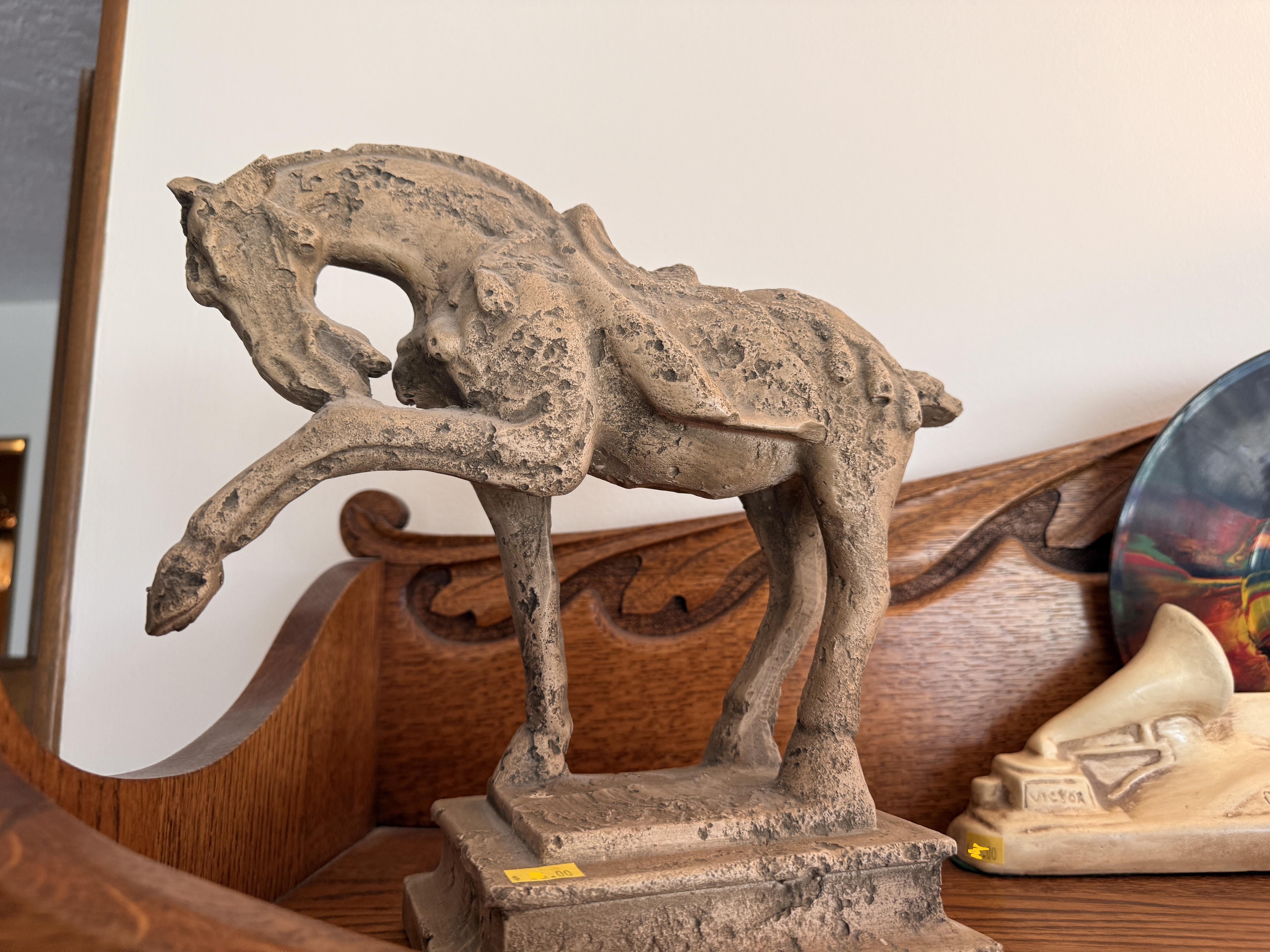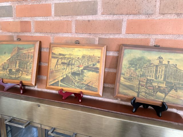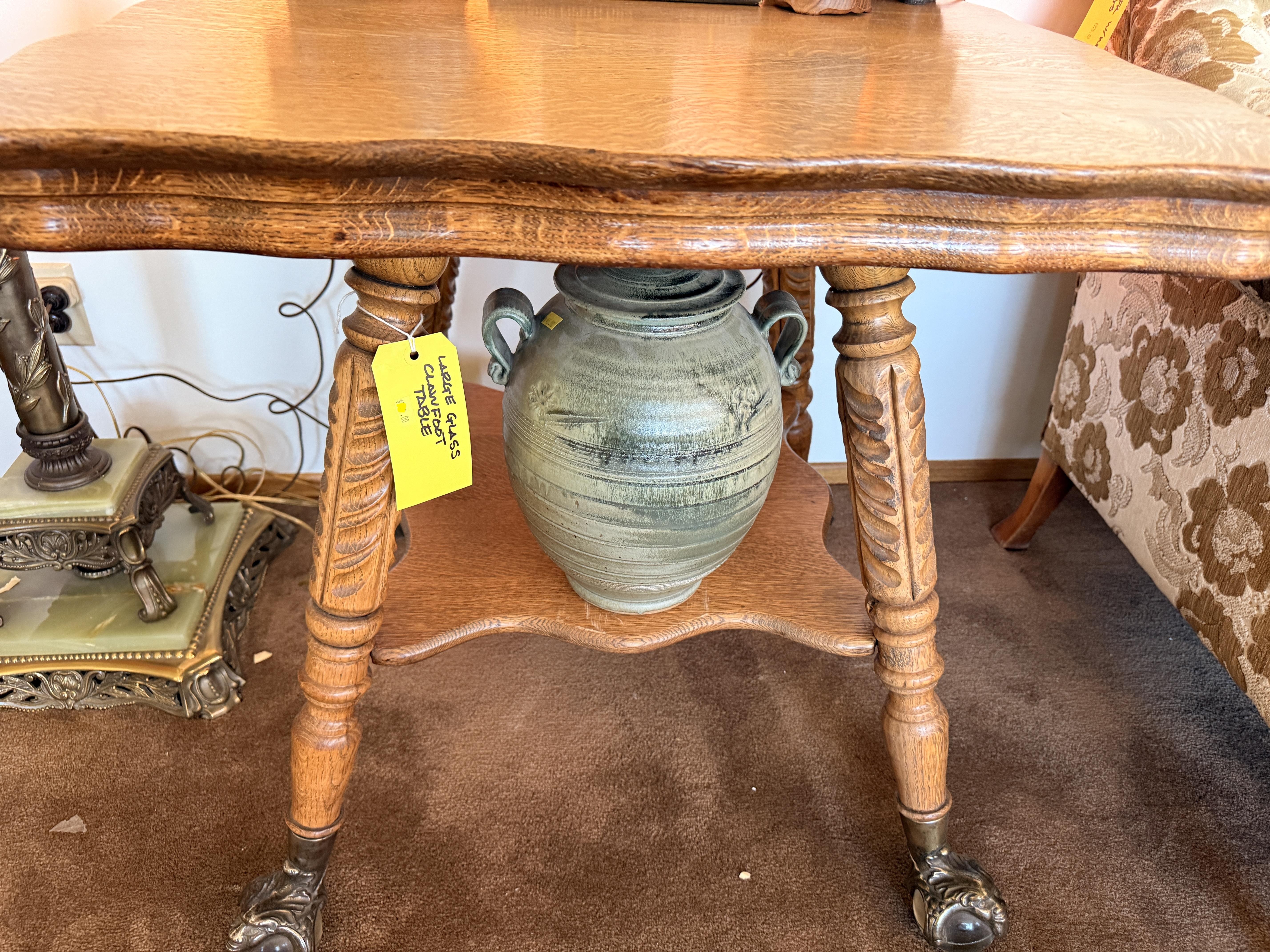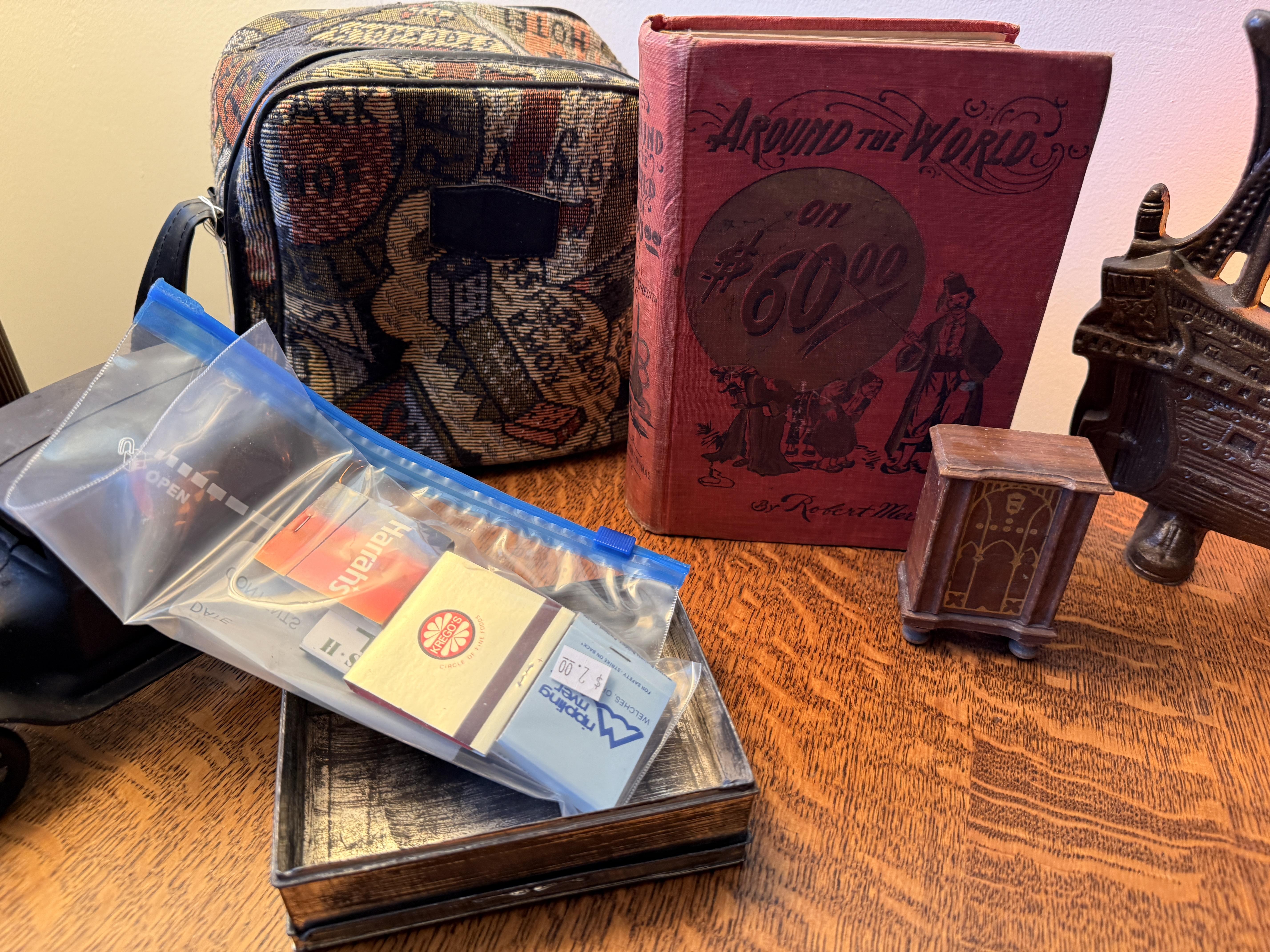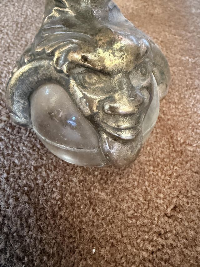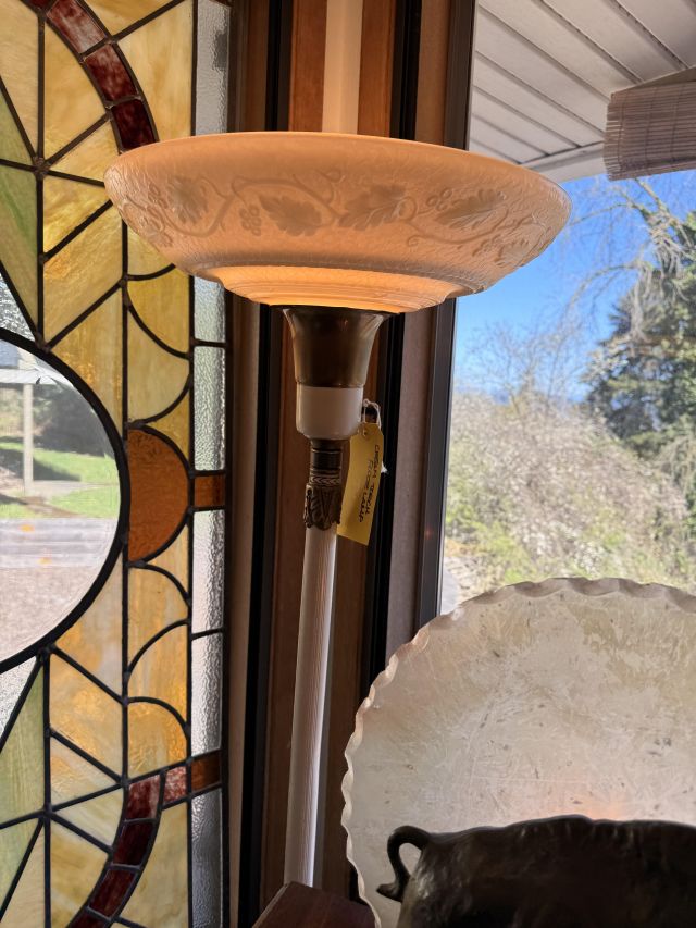 As you enter, you will see a gorgeous classic antique oak hall tree... turn to the left and you'll enter the living room where there are more great pieces! TWO incredible antique oak cabinets with glass fronts. These are not your usual curved front curios... these are very unique and have the coolest shelf structure inside. Speaking of inside - in the cabinets are lots of old books, including several on Portland and the PNW. Cat figures, swing frames, copper teapot and other interesting finds! On top of one - there is a Nipper salt and pepper set, as well as a great record holder with marble record. The lamps - oh my, the lamps! I know there is a name and I'm sure someone will come tell me at the sale - but I cannot find what they are called! But what I do know is that they are amazing. I usually only see one in a blue moon (no pun intended) - but here we have several. Art deco style figural lamps with the cut glass behind the figure - dogs, buffalo, ships.... they are wonderful and all work! Back to furniture - we have two antique oak accent tables - one with claw feet and the other with a FACE on the claw feet! Super cute antique sofa with matching chairs, oak coffee table and a gorgeous desk. Antique style floor lamps, glass - including uranium, pottery, and... some real Portland history. Don't shoot the seller! We've got a tabletop antique radio (works!), brass telescope, some games, binoculars, fantastic stained glass, copper boiler and an incredible mirror front wardrobe cabinet.