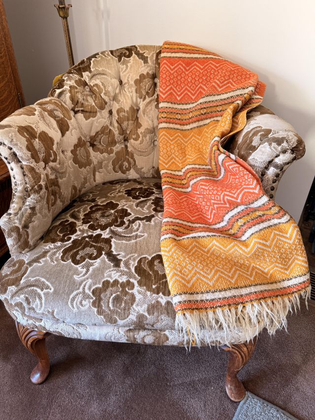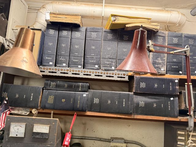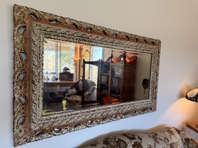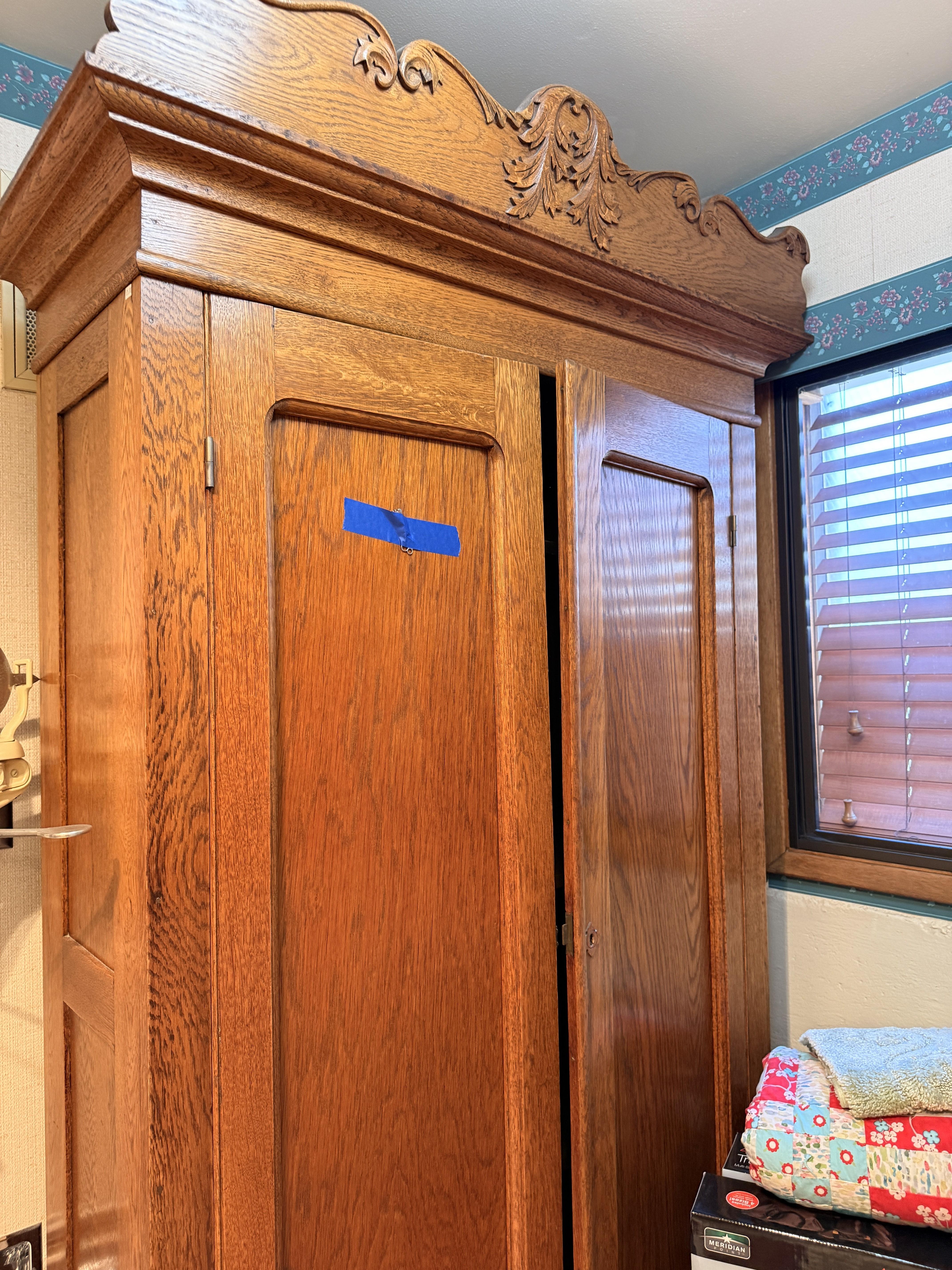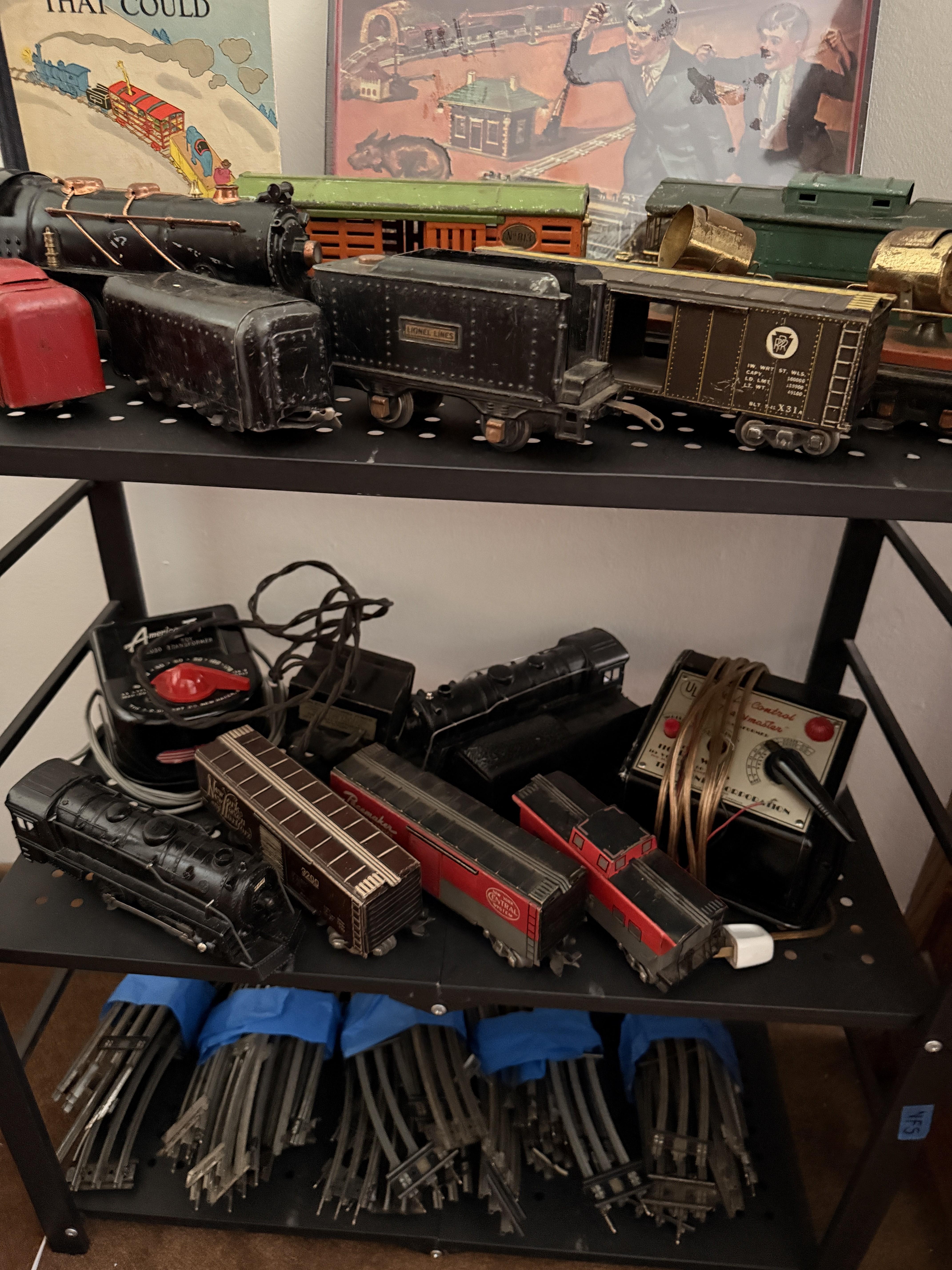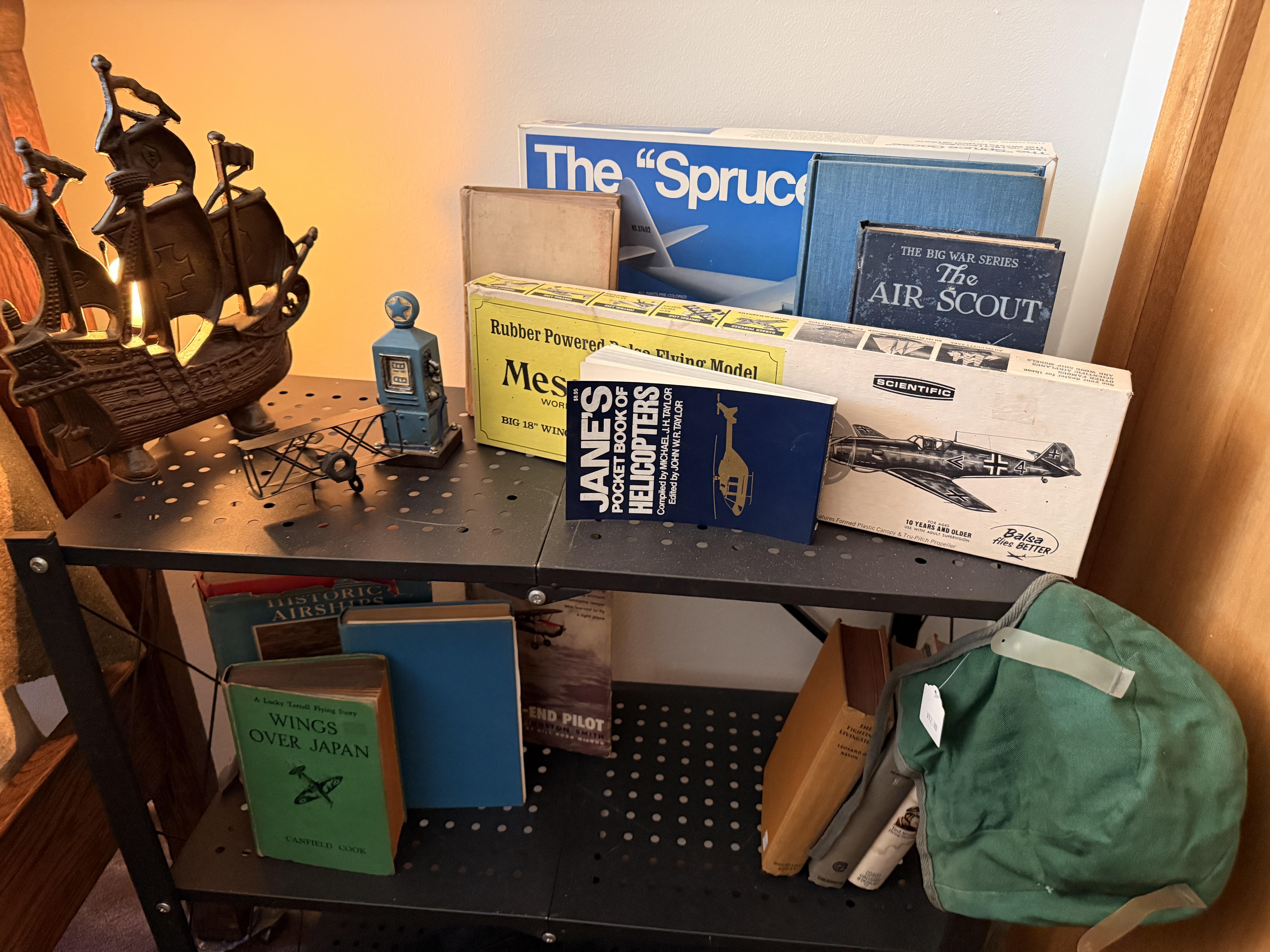 The bed is the real showstopper here. Stunning antique oak with so much detail!! We've also got another gorgeous wardrobe, tall dresser with mirror, wonderful rocking chair with tooled leather seat and yet another side table. MORE incredible lamps! Ships and lamps with cylinder shades. Lionel trains and tracks, linens and hats, vintage books some clothing - check it out if you love your flannels!!