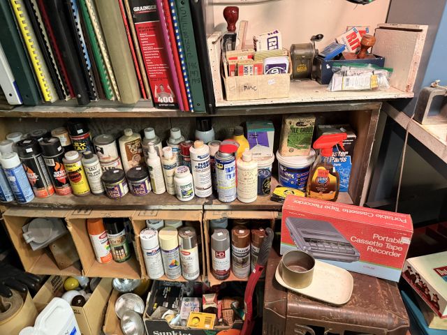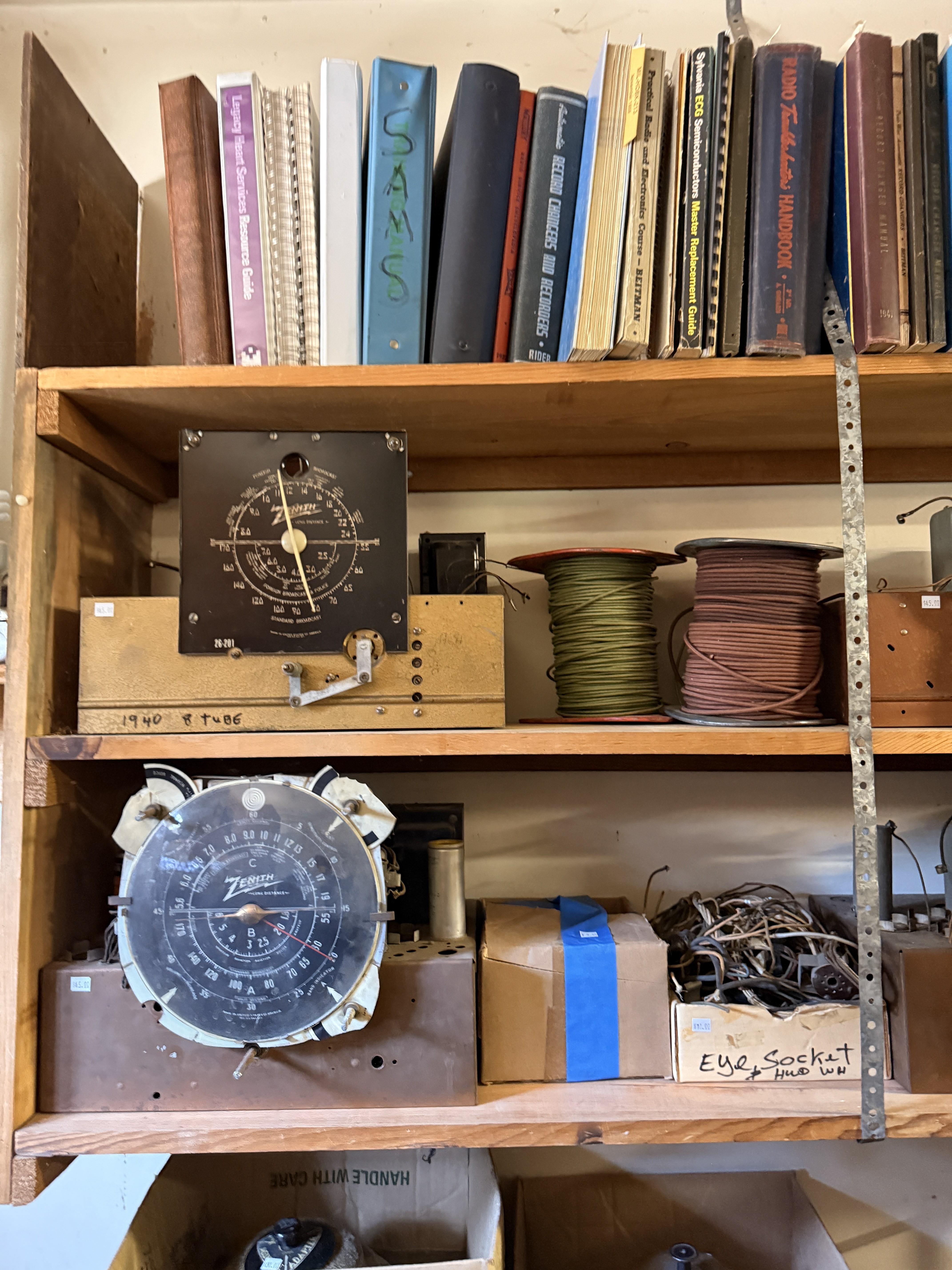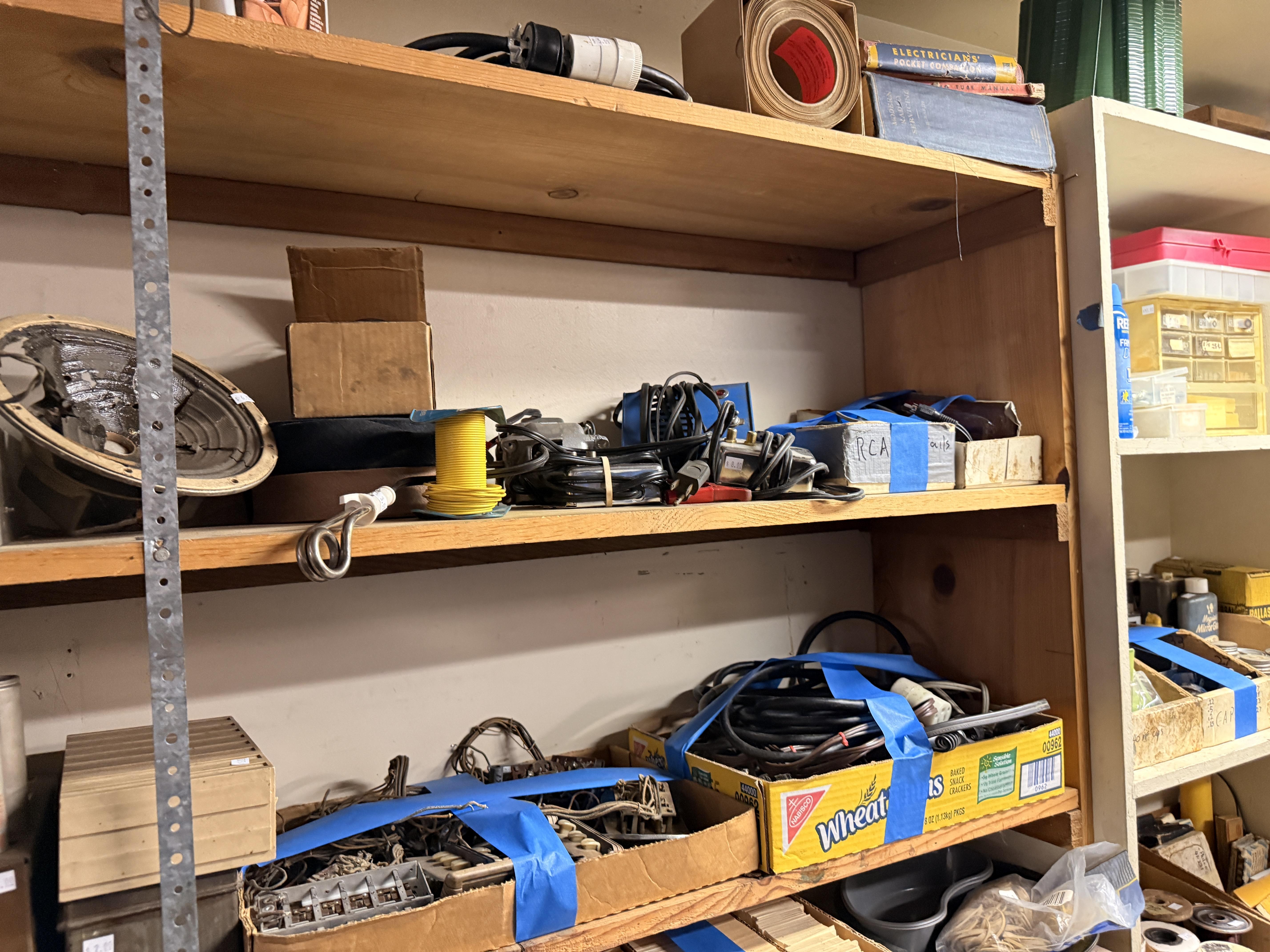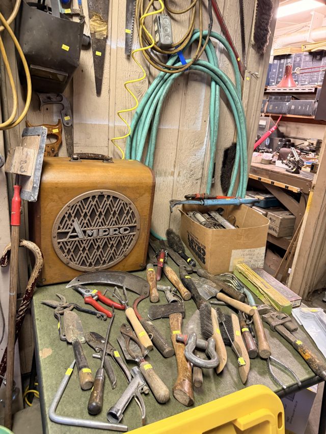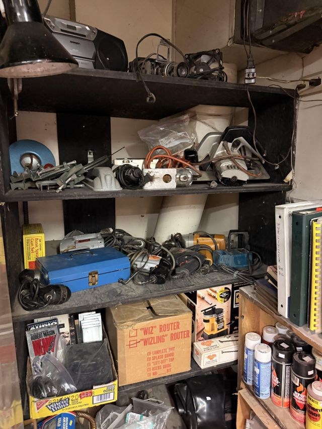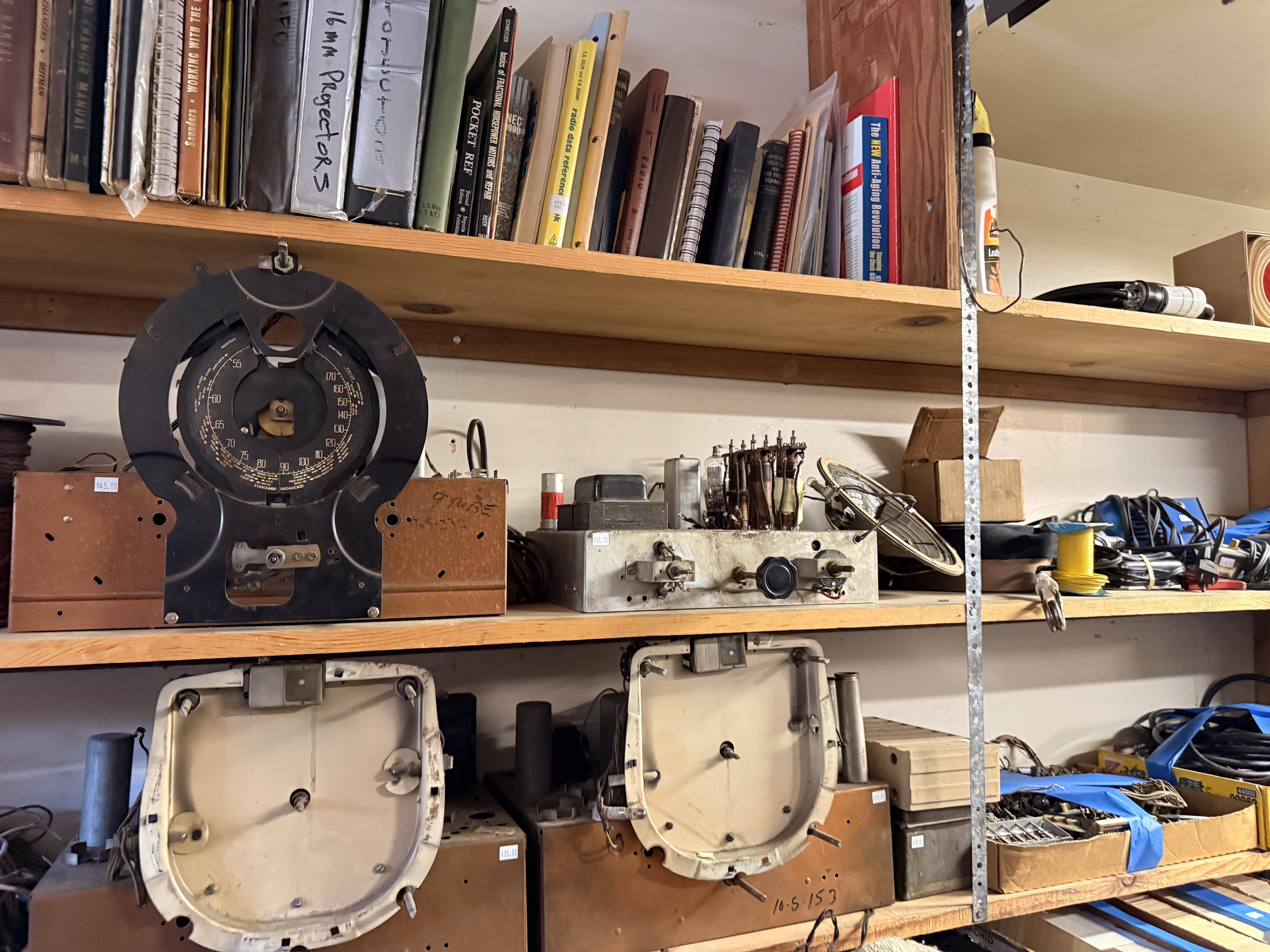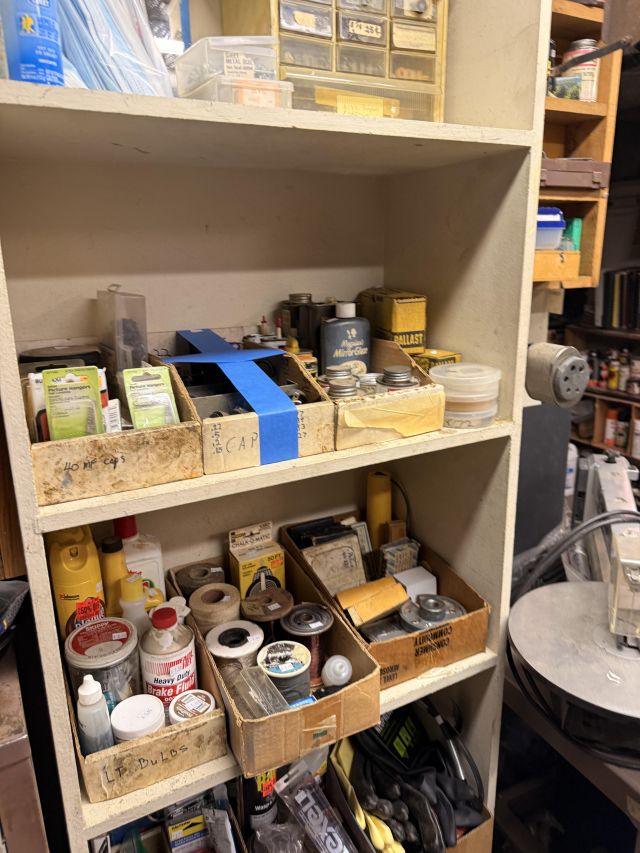 Dads hobby was old radios - and it shows! We've got so many repair items and books - tube radio equipment/hardware/accessories! But that's not all! We've got household chemicals/paints/repair items, wicker shelf, Dremel scroll saw, several NIB items for the kitchen and more, hand tools from all shapes and sizes including electrical/wood working/automotive/ design/framing and more. SO MUCH too see! It's impossible to list it all!