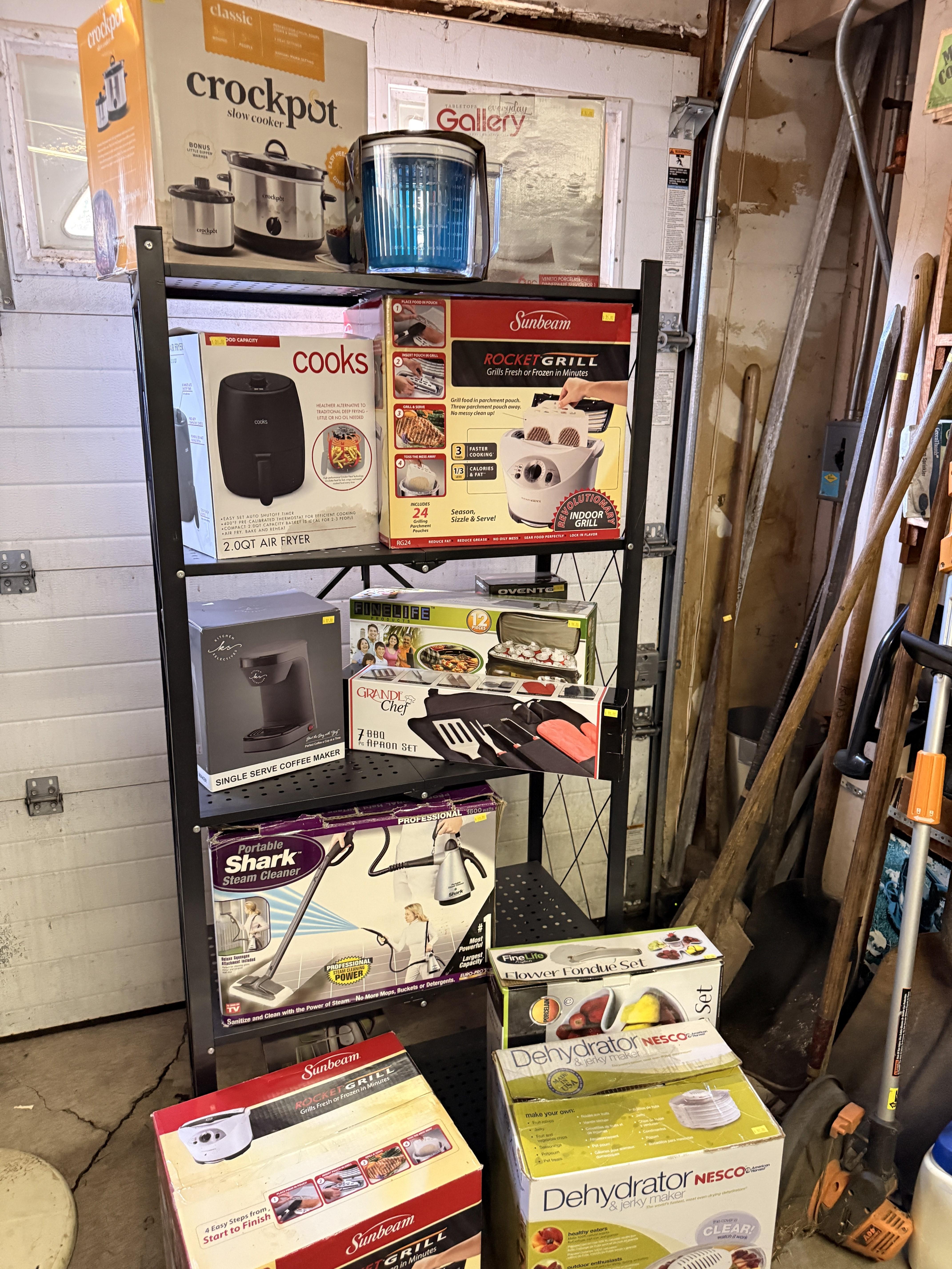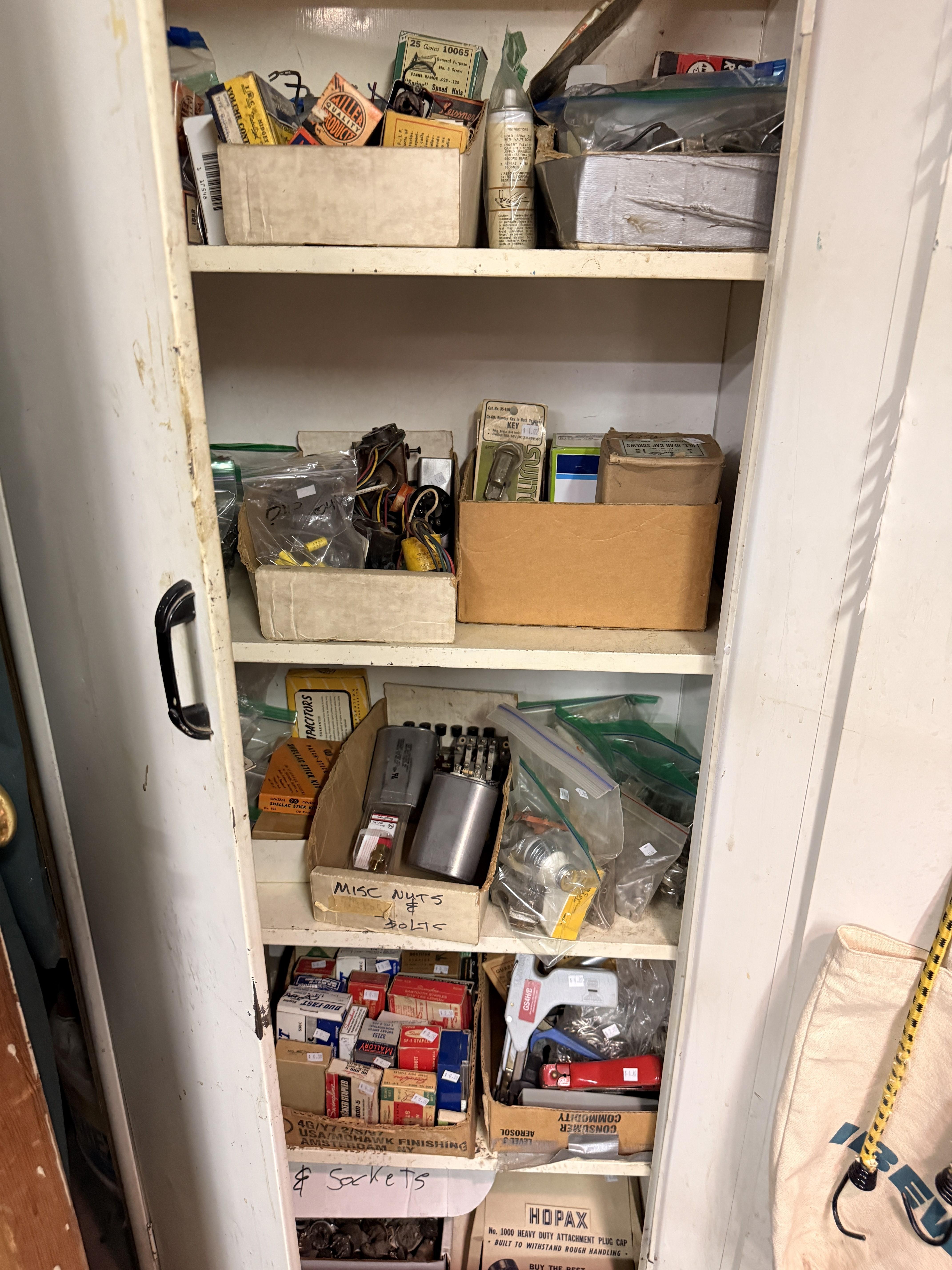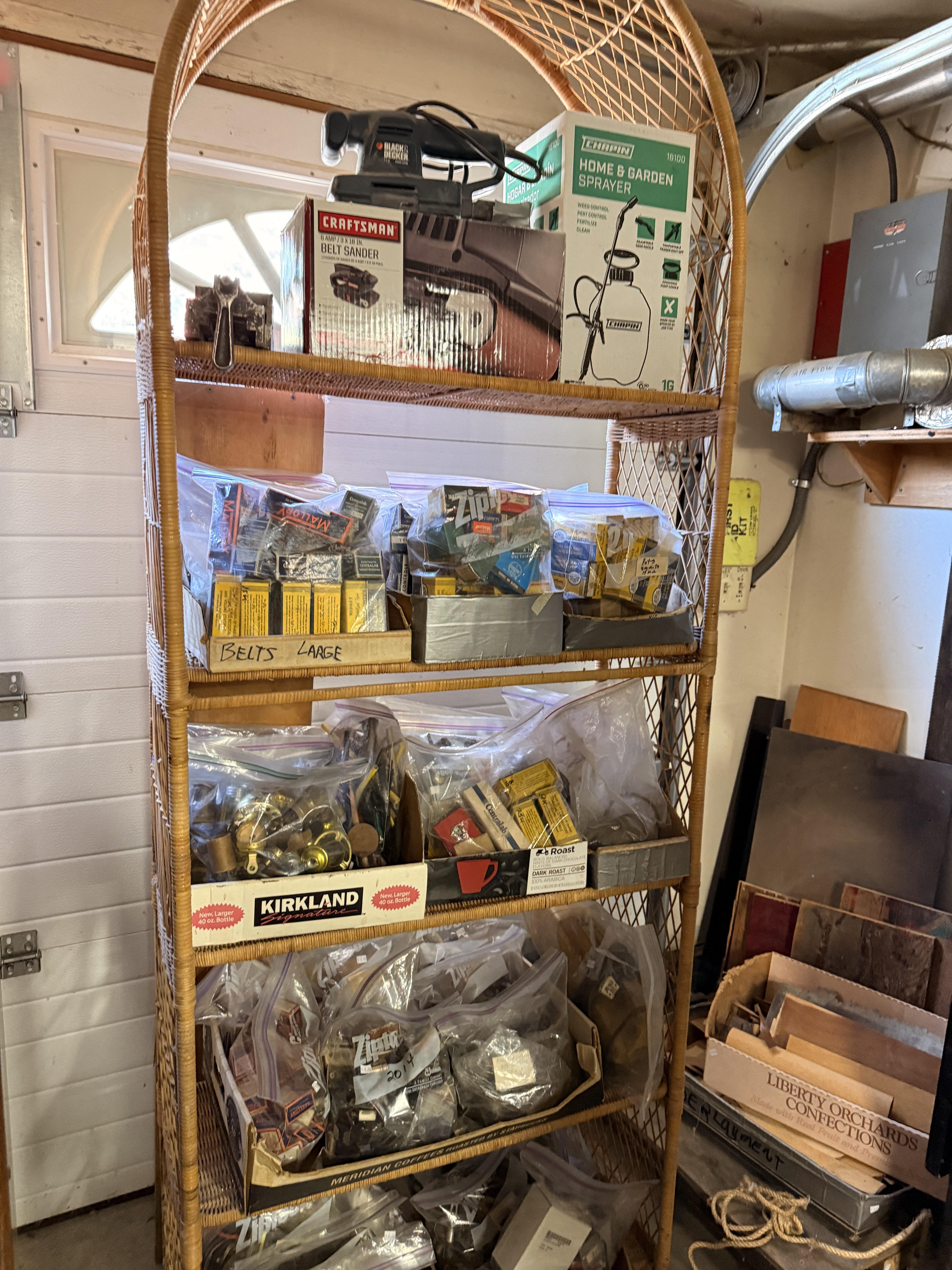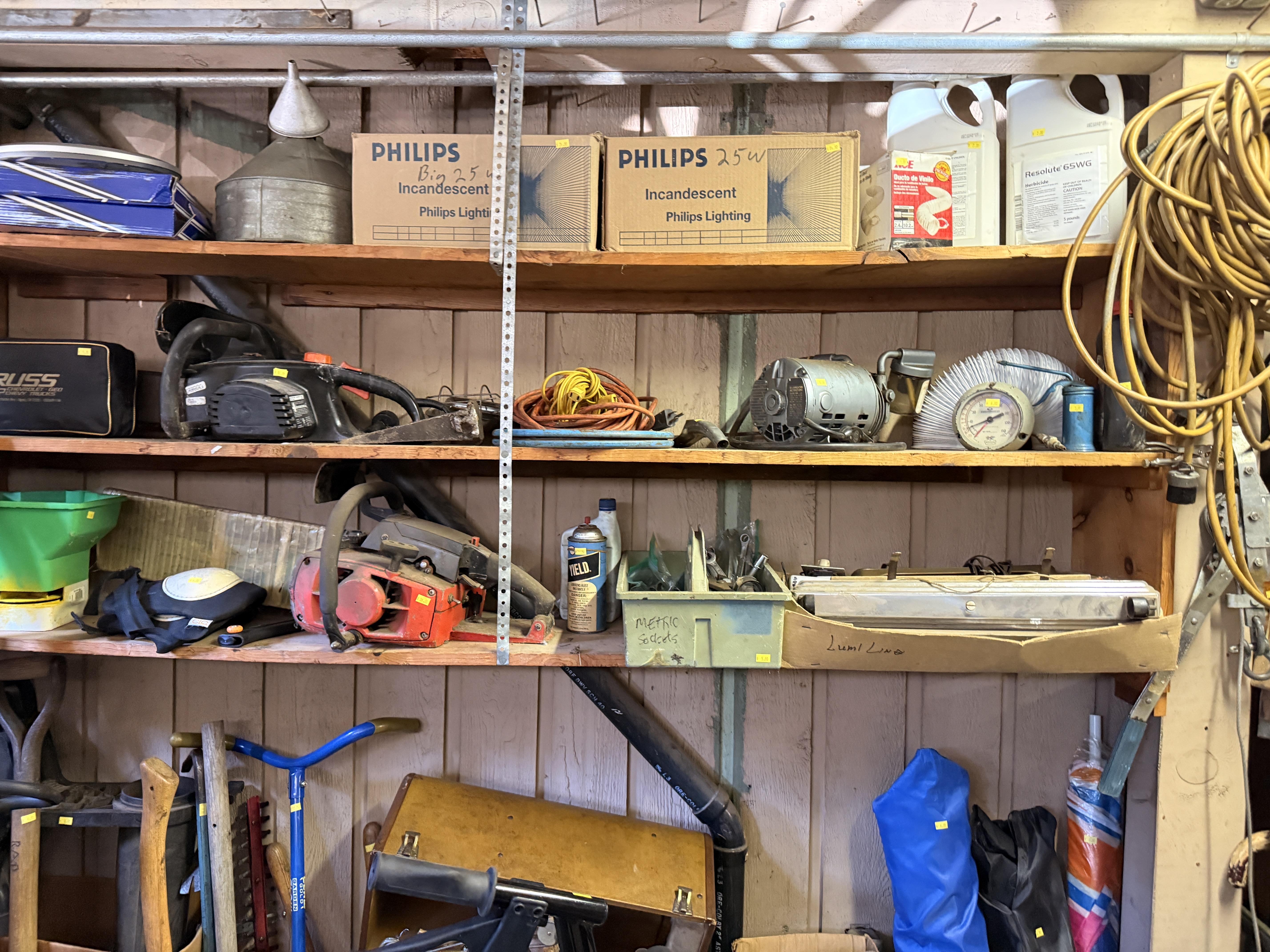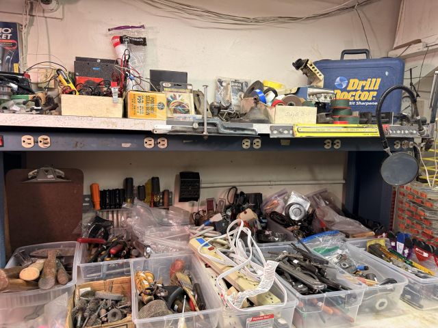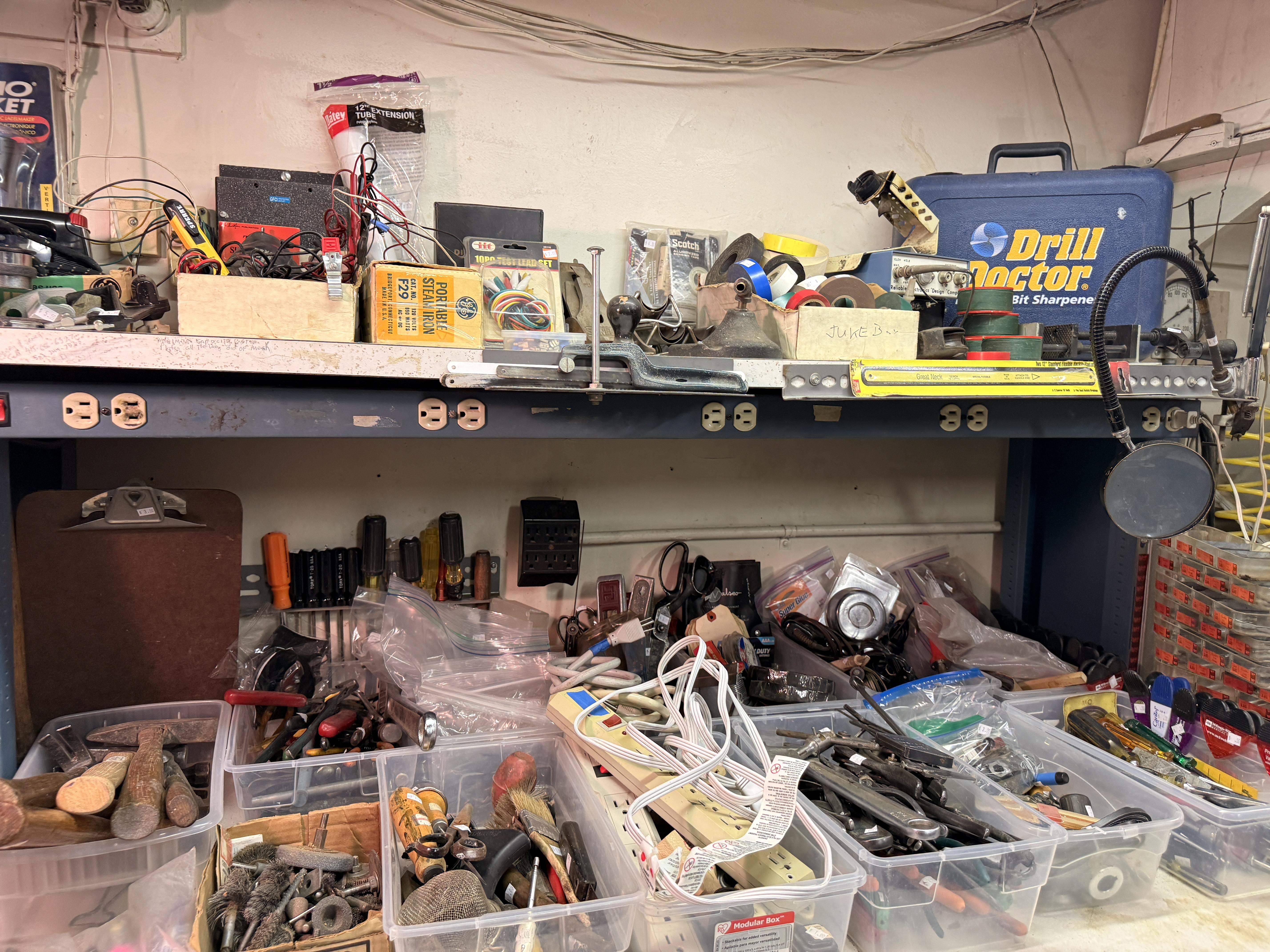 Dads hobby was old radios - and it shows! We've got so many repair items and books - tube radio equipment/hardware/accessories! But that's not all! We've got household chemicals/paints/repair items, wicker shelf, Dremel scroll saw, several NIB items for the kitchen and more, hand tools from all shapes and sizes including electrical/wood working/automotive/ design/framing and more. SO MUCH too see! It's impossible to list it all!