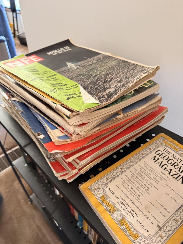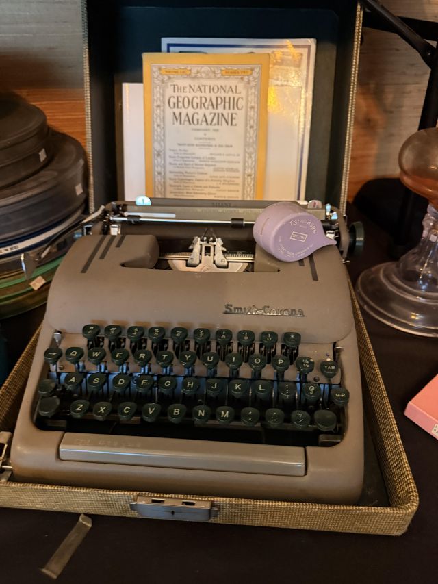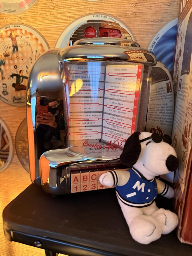 Vogue! Records, that is. If this is what moves you - you have just hit the jackpot! We've got SO many and they are SO good!! Walls of them. Gorgeous antique floor radio, MORE deco lamps, old books, some militaria, Kermit phones!, movies galore, tv, MORE swing frames, hurricane lamps, rocket lamps, mica, lamp globes, yet another vintage floral chair (this one reclines), another copper boiler, books on antiques and collecting, antique sewing machine table, books on old radios - collecting and repairing, vintage typewriter, 78 records, jukebox style radio, reel players. Vintage Christmas - including several Putz houses.