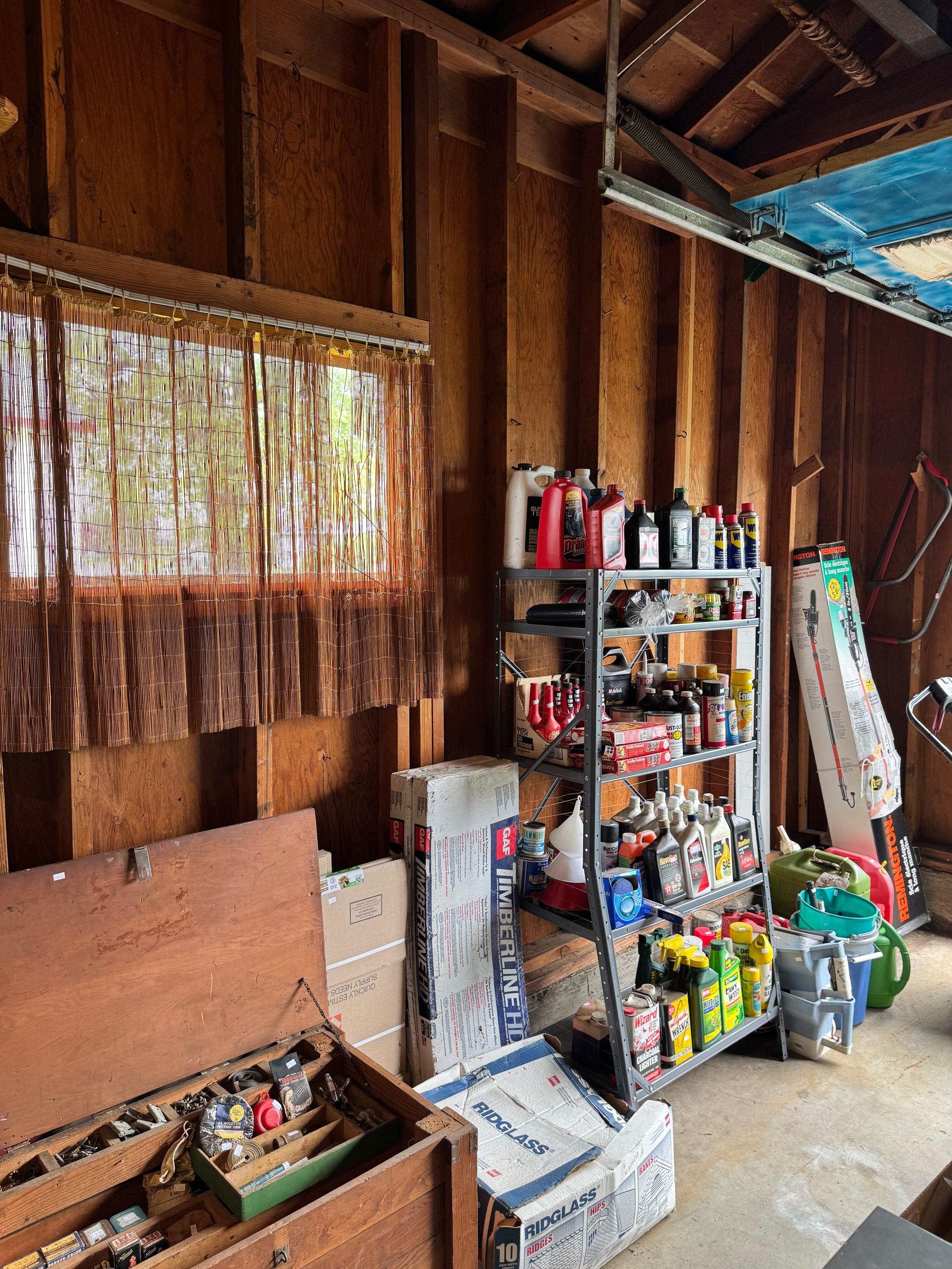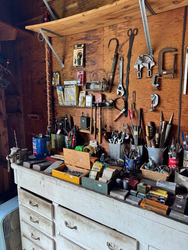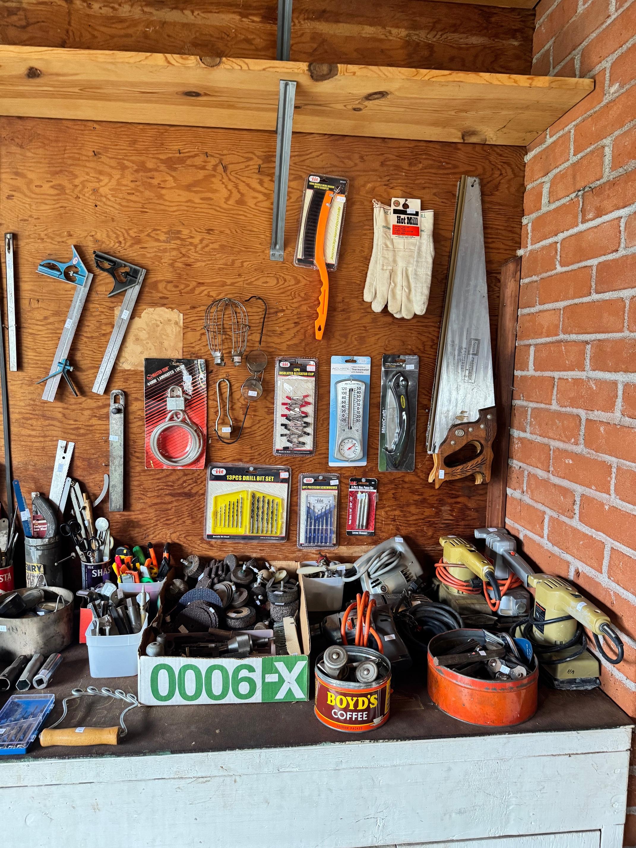 Garage full Of vintage Tools, wood, and more. Jam packed.