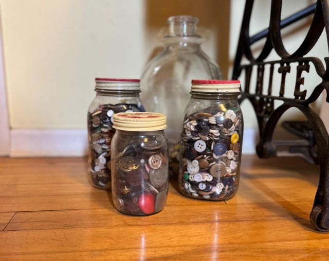 Cool collection of belt buckles and what nots. Memorabilia from Frito Lay…fun stuff…button button, who has the button? We do!! Jars of vintage buttons…